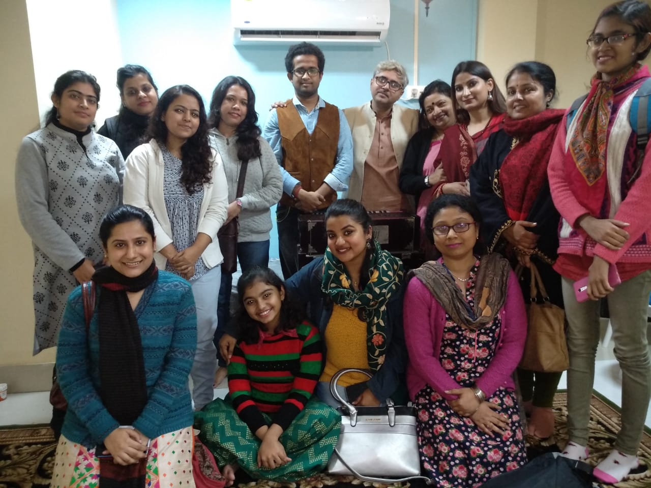 Most of the disciples of Sri Anjan Majumdar talk about a very unique and effective teaching method of him, where he makes the teaching- learning process very smooth and well designed. As a guru, he doesn't have any biased view towards any particular stream of music, rather he always gives importance to a proper musical understanding and power of analysis. After assessing the natural abilities of a disciple and after strengthening his/her fundamental sense of music he then suggests the most suitable genre for the learner. He always believes in quality over quantity and that is the reason he teaches each and every disciple on one is to one mode and thereby taking care of his/her special needs as a learner. There is never any place for group learning in his method of teaching because he simply doesn't believe in that format. It's the passion, for music with a very sharp intellect and scientific approach blended with utmost care and concern for the well-being of the students, that makes him an outstanding mentor. To him, music is like an ocean where you can not put any boundary wall and compartmentalize the genres. He is always against the sense of superiority that classical musicians usually take as a baggage. On the other hand, he is equally against the thoughts of some natural performers, who think systematic learning is not mandatory to become a musician. Rather he thinks, to perform any genre of music it's desirable to have a proper training of that particular genre. Every musical genre has some special nuances, sense of voice throwing , ideas of demonstration that can only be achieved through proper and intensive learning. That is the reason that many of his disciples sing contemporary compositions , Ghazals very successfully beside performing their primary classical/ semi classical genres. Another very important philosophy of his teaching is to encourage and bring out the creative imagination from his/her disciples. He believes in the individuality of every disciple and believes in setting them free so that they can come up with new ideas and different aesthetic shades. As a guru, his success is not only for the quality of music that his disciples present but also for the versatility they show in their performance. Melodious voice presentation, spiritual soul touching style of singing blended with subtle intelligence are the salient features of the performance of his disciples and for that they are acknowledged worldwide by both common listeners and experts.